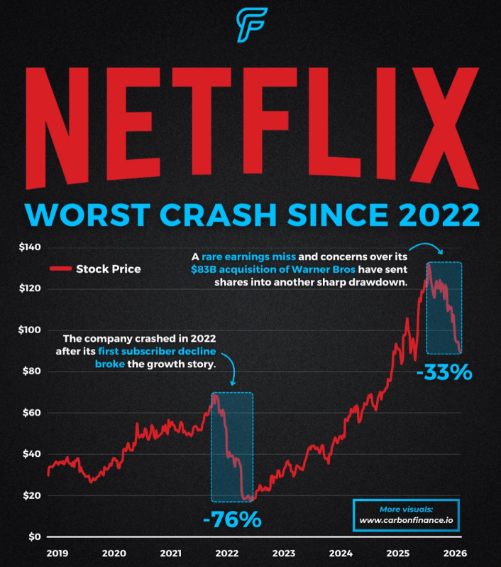 Netflix: Beat on revenue ($12.25B, +16% YoY) and crushed EPS expectations ($1.23 vs $0.76 estimate), but the stock dropped nearly 10% after hours. Reed Hastings announced he’s leaving the board. Q2 margin guidance came in slightly below the Street. The WBD termination fee padded the quarter, and investors didn’t love the organic picture underneath it.