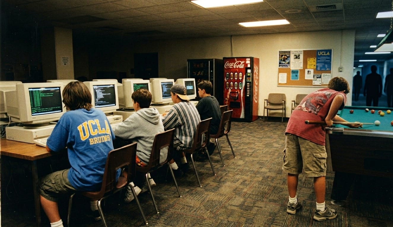 So much so that when I was 12, I went to a coding camp at UCLA and won the billiards tournament. A friend in the cohort went on to sell his company to Google for $25M+ about a decade later. Perhaps I should have paid more attention.