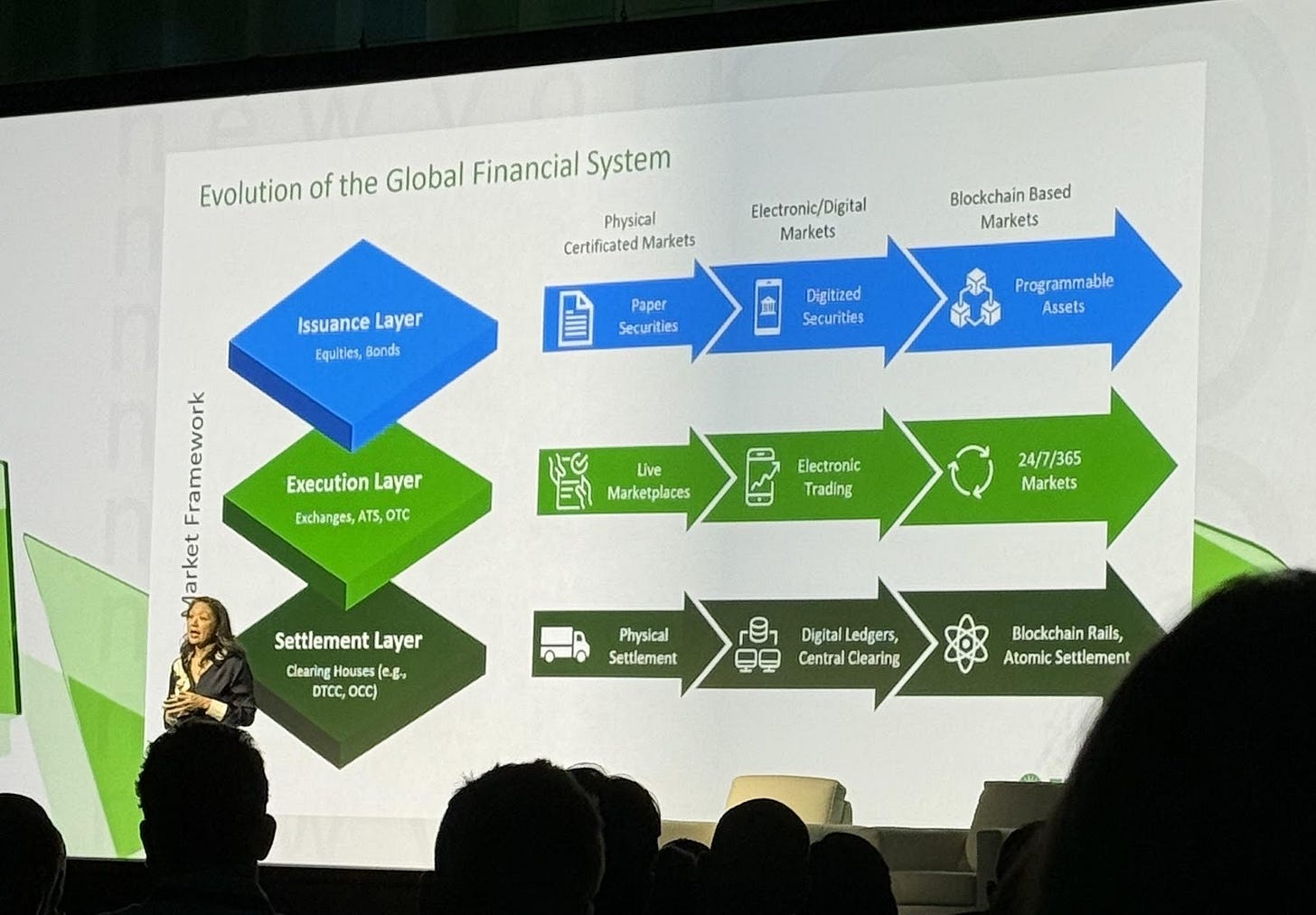 Fidelity reinforced the narrative with a presentation that walked through the full evolution of financial markets: from paper certificates to digitized securities to programmable assets. From live marketplaces to electronic trading to 24/7/365 markets. From physical settlement through central clearing to blockchain rails with atomic settlement. It was methodical, institutional, and entirely devoid of hype.