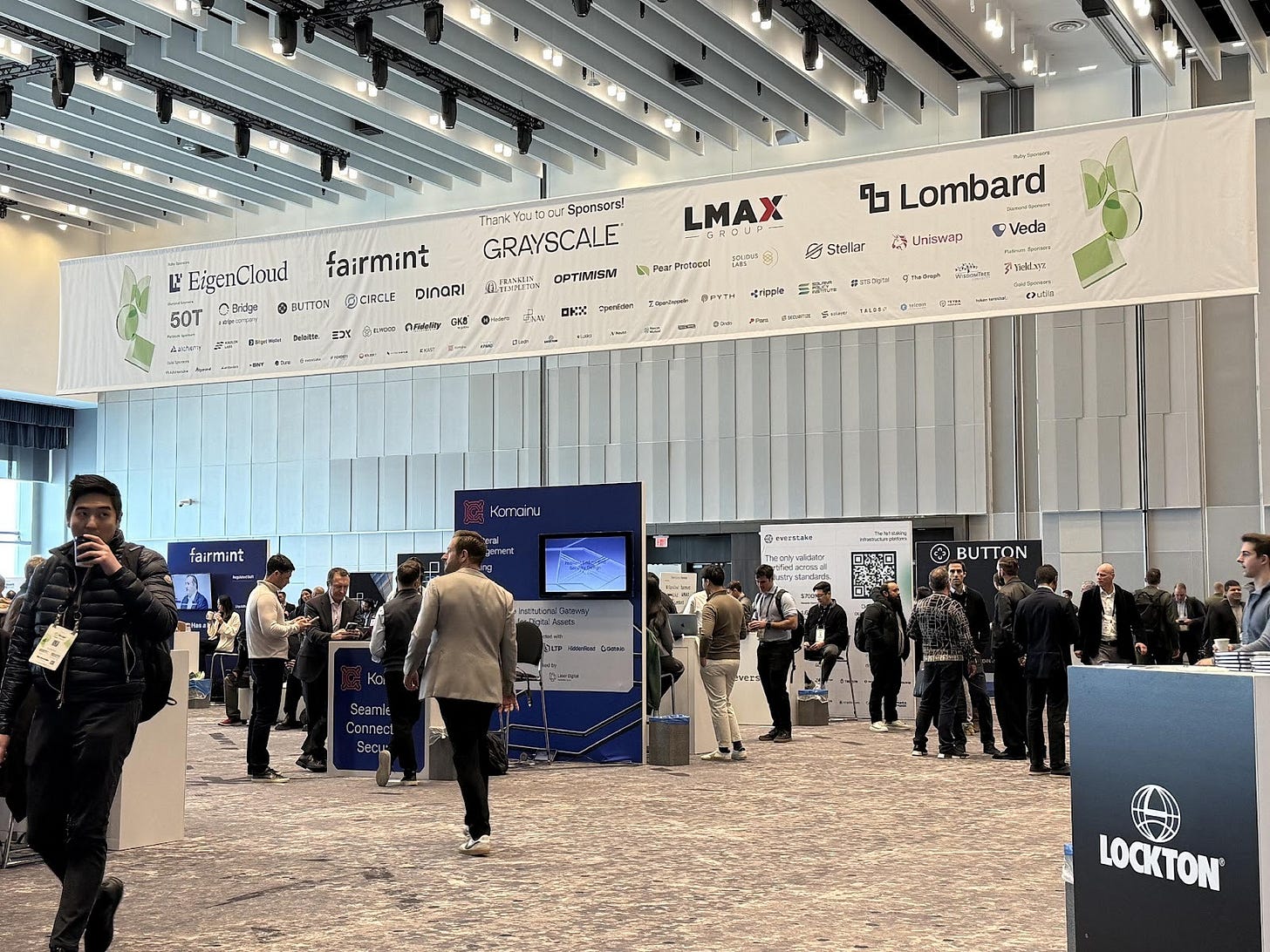 This was the biggest institutional crypto conference in the country. The sponsor banner included dozens of companies. The speaker list featured regulators, asset managers, and infrastructure builders from nearly every major financial institution. And across three days, I heard almost no serious institutional conversation about any specific digital asset other than Bitcoin.