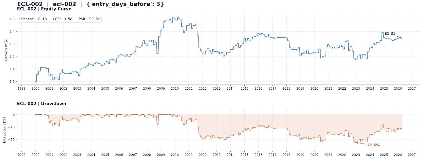 The three strategies in this post produce similar-looking pictures if you squint. It takes the fee layer, the full parameter sweep, and the 26-year regime backdrop to see what’s actually there, which in all three cases is not enough.