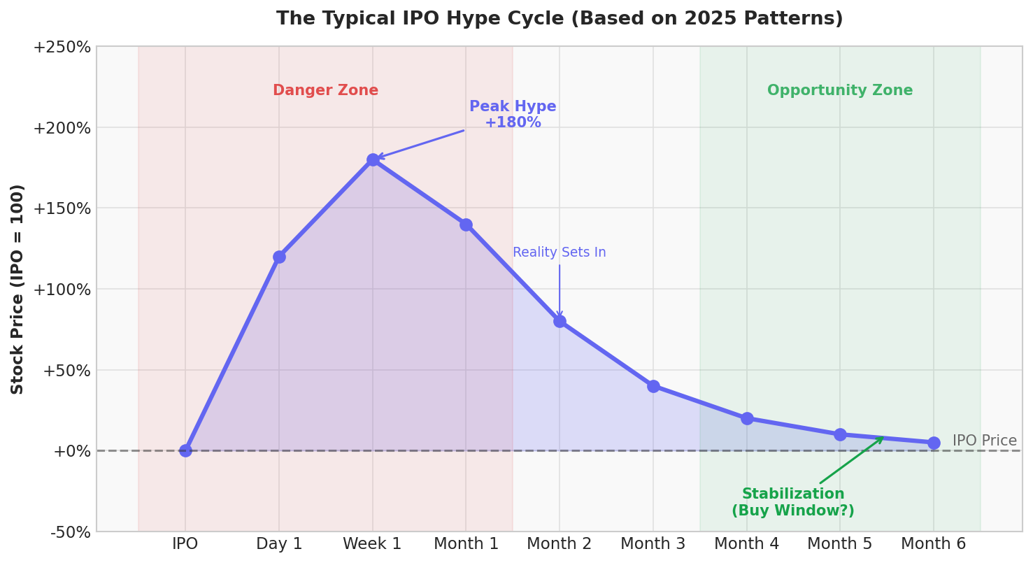 Then the selling pressure begins. Private market shareholders who’ve been waiting years for liquidity start taking profits. Early institutional buyers who got allocation at IPO price sell into the retail enthusiasm. And as the hype fades, people start asking uncomfortable questions about whether a $2 billion valuation for a custody business makes sense.