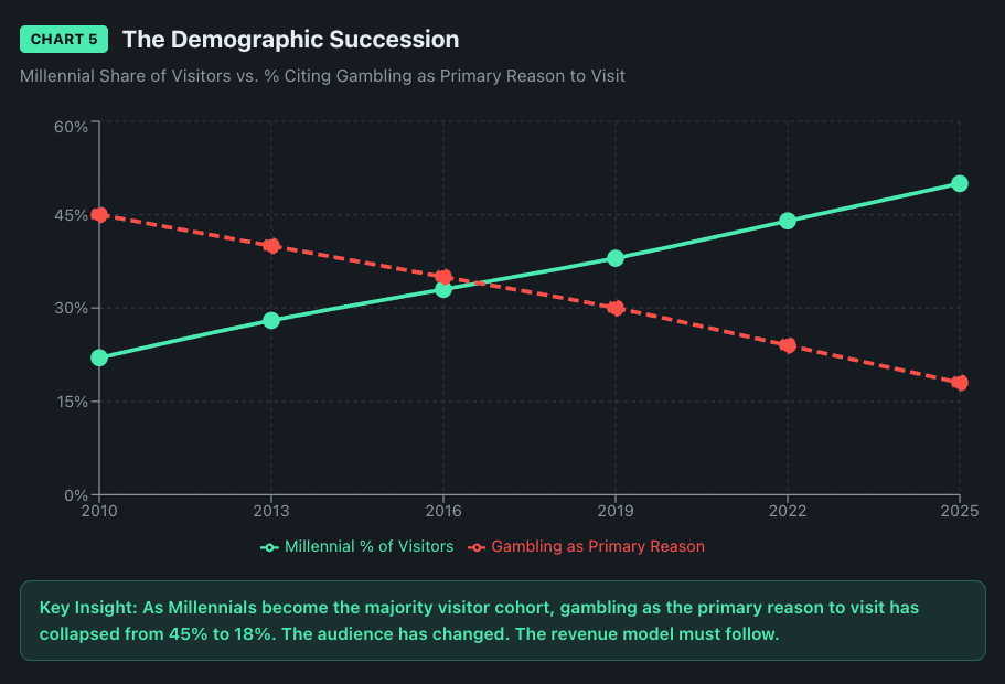 The thesis is straightforward: gaming revenue has a ceiling; live experience revenue has a different growth curve entirely.