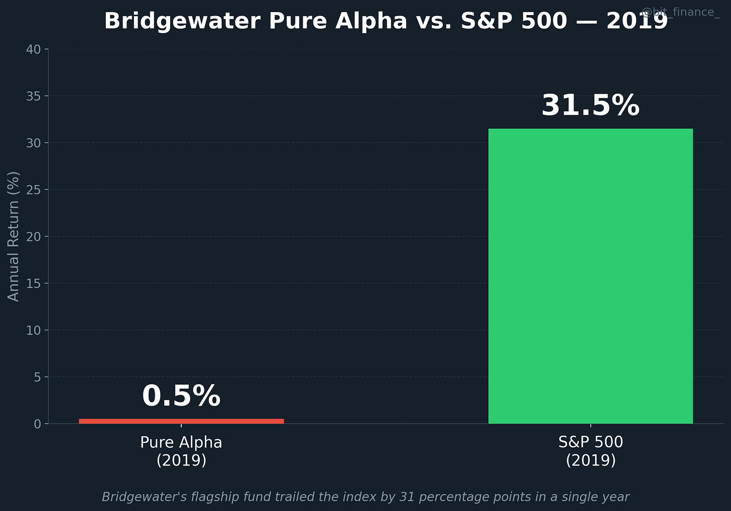 In 2019, Bridgewater’s flagship Pure Alpha fund returned approximately 0.5%.