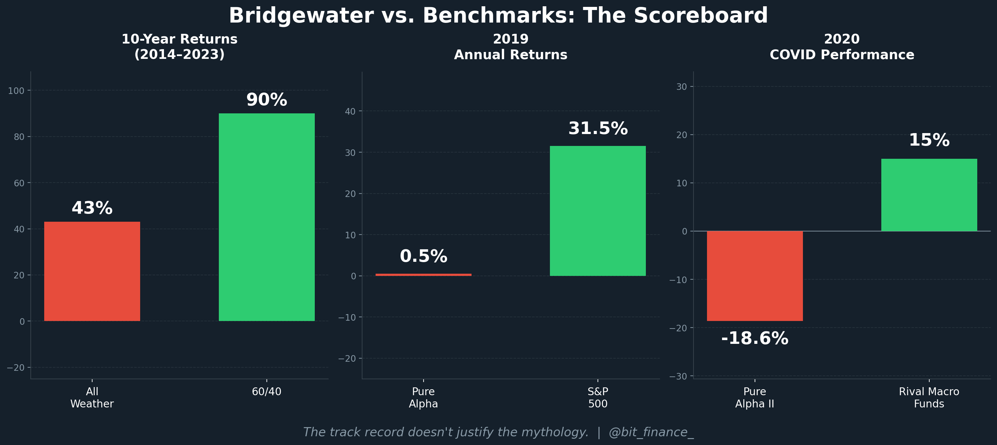 Ray Dalio wrote a bestselling book about principles he did not follow. He built a culture of accountability that he exempted himself from. And he delivered a decade of returns that a retiree with two index funds and a free afternoon could have outperformed.