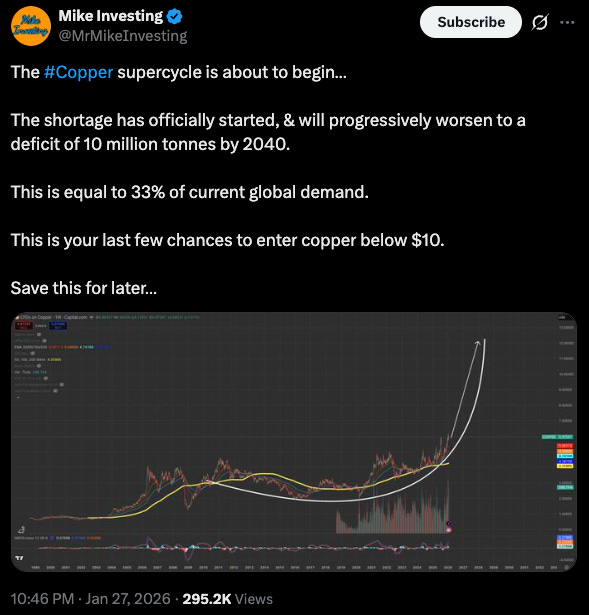 Three metals, three different dynamics. Gold is reasserting its role as the original store of value while Bitcoin finds its footing. Silver’s paper market is testing physical reality in ways that may force a reckoning. Copper, essential to everything from AI infrastructure to electrification, faces a deficit that existing supply chains cannot address.